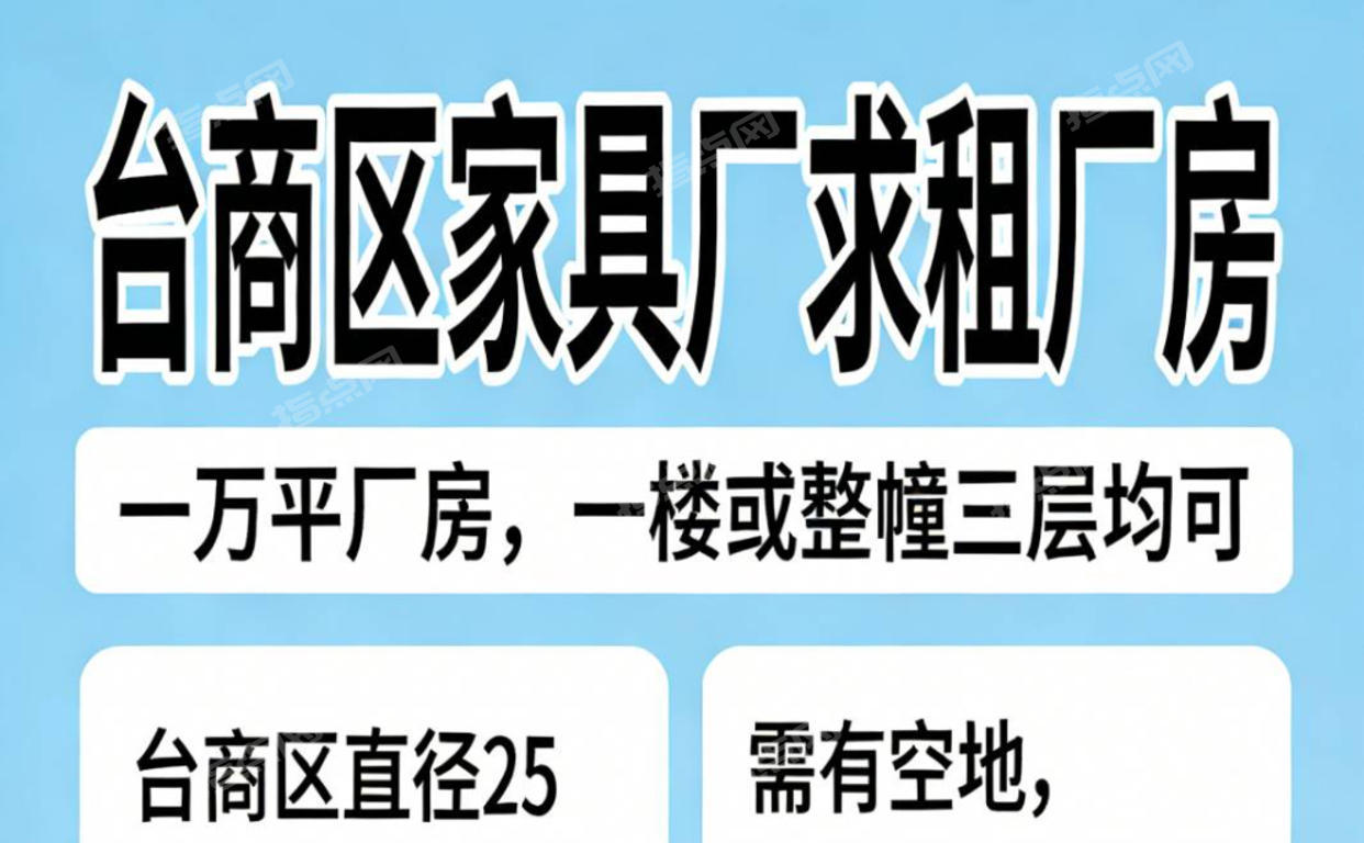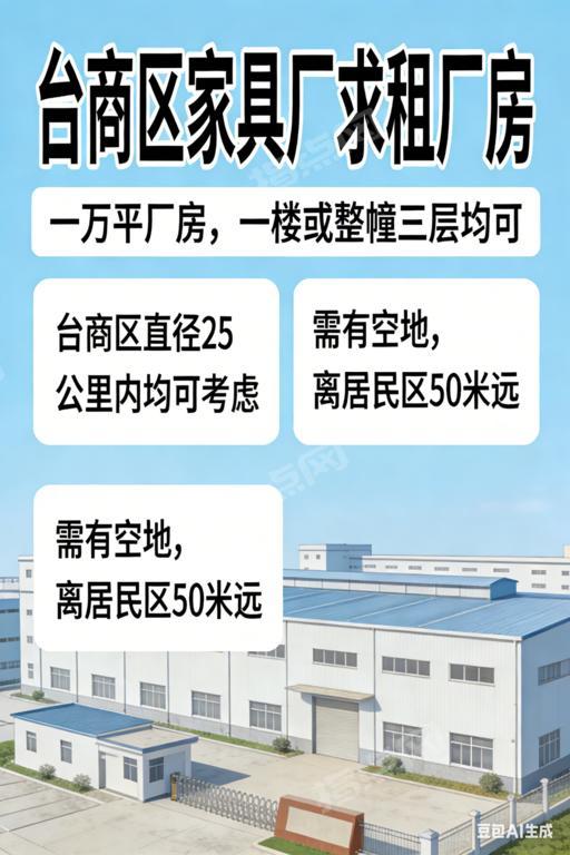 一楼为佳,有整幢三层内也可以。有空地,离居民区50米远。台商区直径25公里附近都可以。黄总