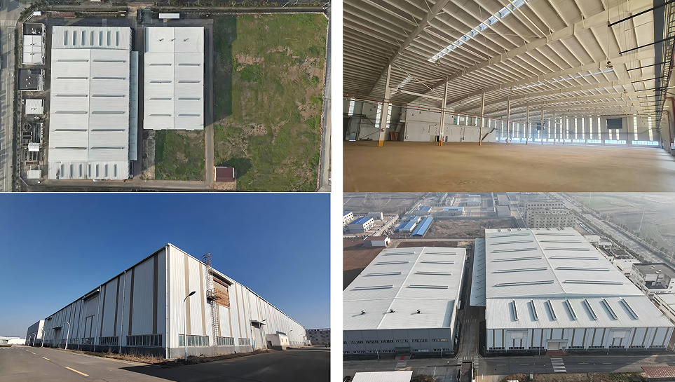 厂房结构:多栋布局,结构多样(钢结构+钢筋混凝土结构)