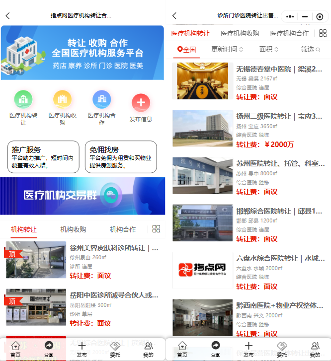 在医疗行业蓬勃发展的当下,医院转让、收购、托管等需求日益增多。然而,信息发布渠道的局限,却让众多有需求的机构和个人犯了难。想找个靠谱平台发布医院转让信息,却不知从何下手?别担心,指点网商业地产交易平台就是您的绝佳选择!