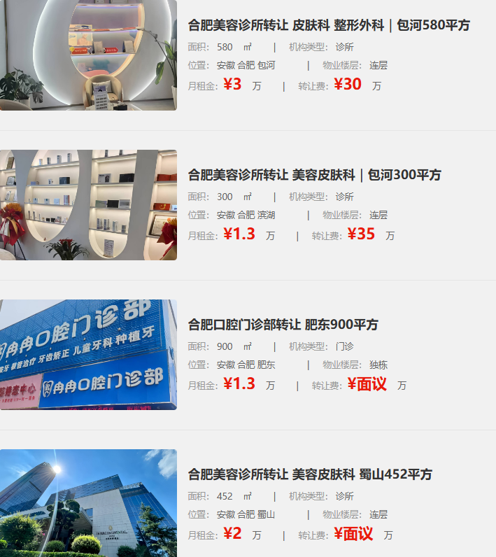 合肥中医诊所转让,面积230平方,每月租金1.5万,租金一季度一付,还有三年租期。
