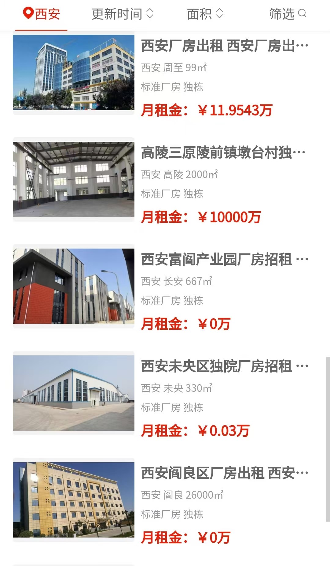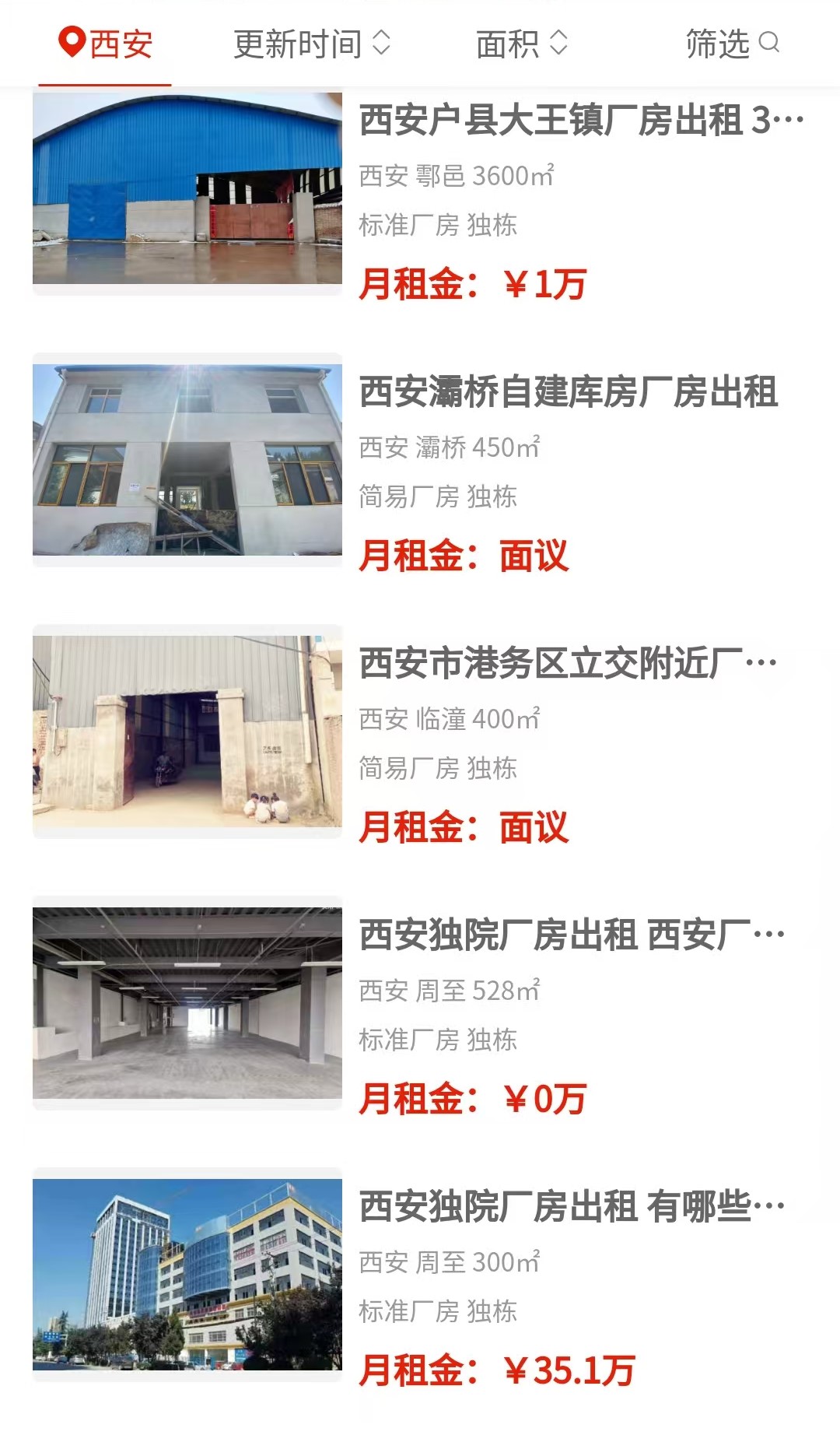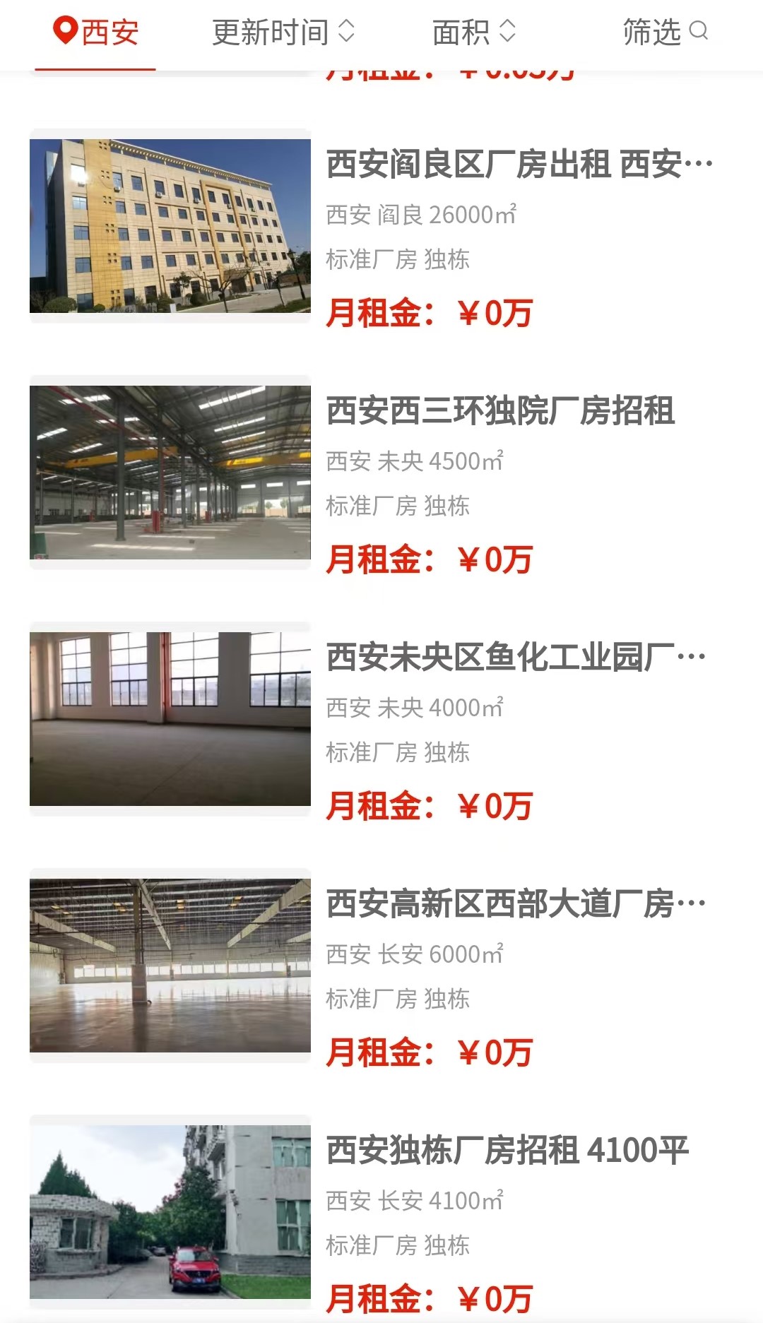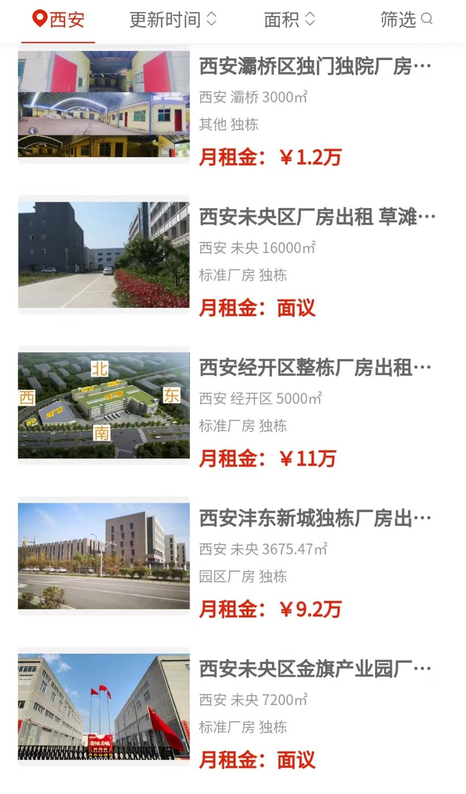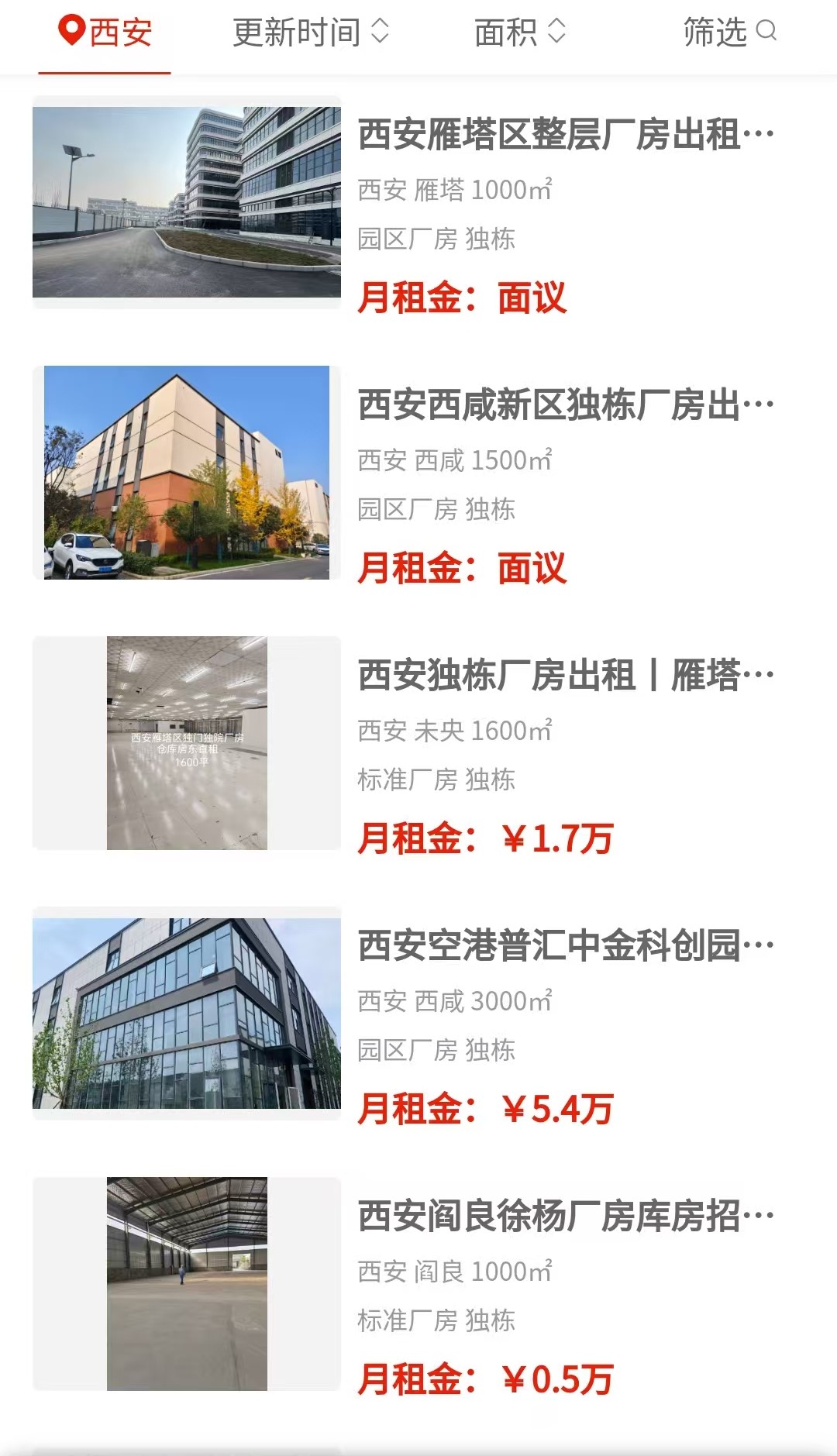 不过细看也发现点小插曲。比如有一条房源标题明明写着“雁塔区独门独院1600平”,结果位置一栏却填的是未央。这种前后对不上的信息,大家打电话时多问一嘴就行。