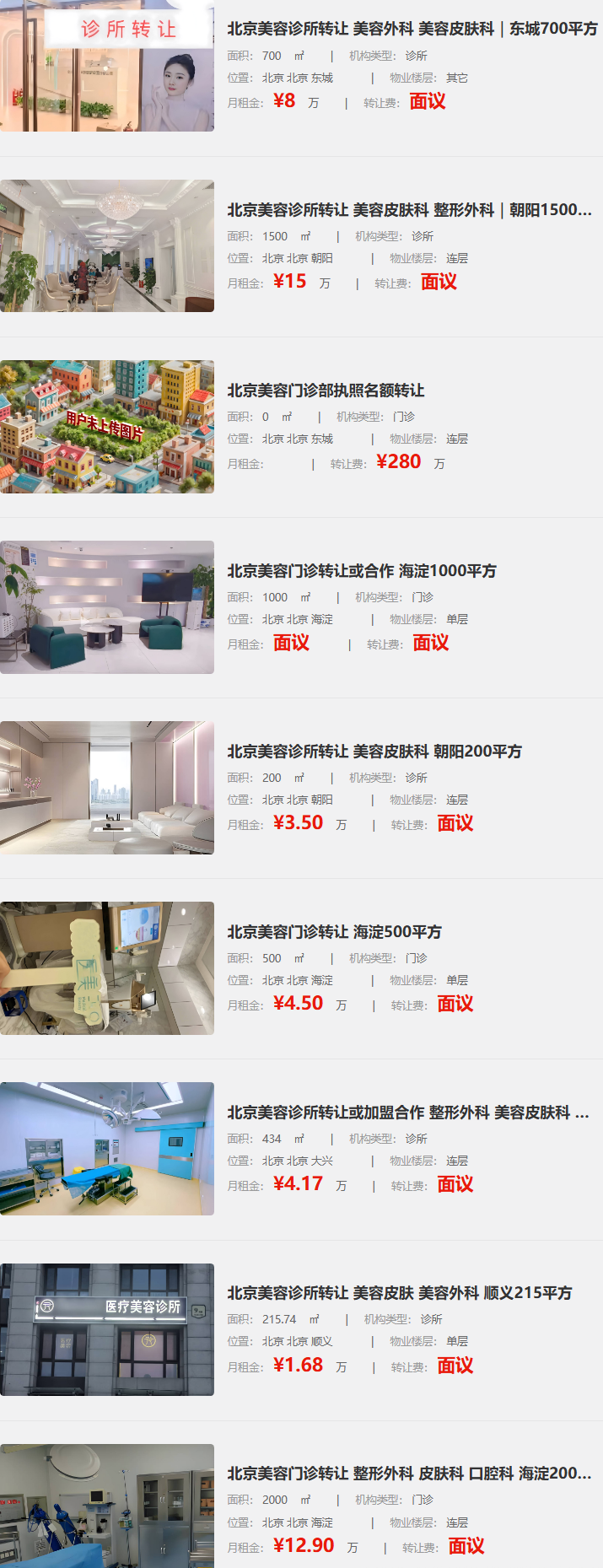 预算有限的,可以看看外围。大兴434平的诊所,年租金50万,有稳定客源,甚至接受共享平台。顺义中央别墅区一个215平诊所,带着近十台光电设备(光子、点阵、超Q等)和2000名患者,月租仅1.68万。