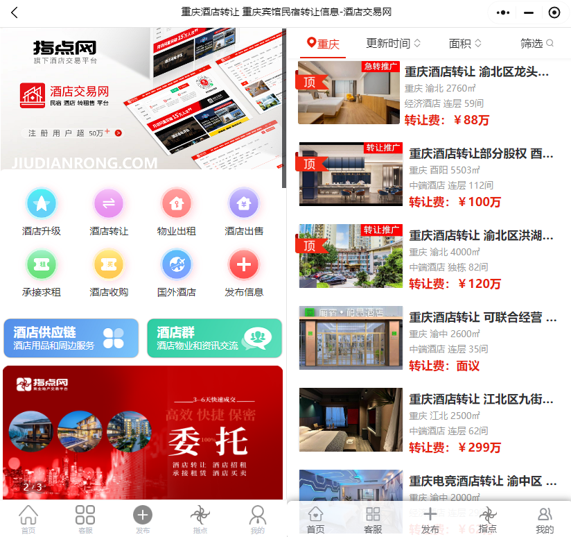 手机用户,请使用微信小程序查看或发布酒店转让最新信息