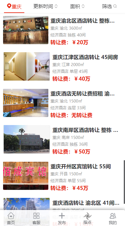 在重庆的多个区域,包括渝北区、酉阳区、江北区、渝中区、大渡口区、九龙坡区、沙坪坝区、南岸区、永川区以及万州区等,都出现了不同规模和类型的酒店转让信息。这些酒店涵盖了经济酒店、中端酒店以及高端未评星酒店,规模从面积 1500㎡到 7000㎡不等,房间数量从 31 间到 150 间各异。