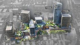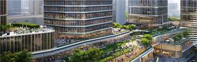 【基础信息】 办公楼栋:5座 办公楼层:A座5-33层,B座5-19层,C座5-8层,D座9-19层,E座5-11层 结构层高:约4.4-4.75米(楼板到楼板) 单元净高:约3.0/3.3米(由架空地板到吊顶) 主力单层面积:约1,300-1,900平方米 公共区域设施:精装修茶水间、行政专用卫生间、男女卫生间、无障碍卫生间、清洁间 单元交付标准:约150毫米架空地板、镀锌钢板天花、LED灯盘、中央全空气可变风量(VAV)空调系统、新风量约40立方米/小时/人 楼板承重:约400公斤/平方米 车位数量:约2,300个 客用电梯:日立,DCS目的地智能派梯系统 绿色认证: LEED 铂金级预认证:A、B 座 LEED 金级预认证:C、D、E 座; 按WELL 铂金级标准设计建造:A、B、 C、D、E 座 管理费:35元/月/平方米