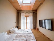 (3)8号院(转让费120万,月租金2500元) 总建筑面积 203.64,其中一层面积114.58,二层面积89.06。 总庭院面积139.25。 客房数量(间):3间+3卫 每个院落配套客厅、厨房、庭院、露台(仅9号院设有)、烧烤区、休闲区、私汤泡池等,该院落为两个独立产权,可统一或拆分转让。